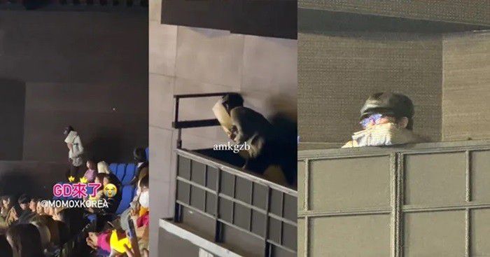 Kedatangan GD yang tidak disangka-sangka ini pun sukses membuat fans terkejut. Leader BIGBANG itu bahkan terlihat memegang spanduk dan ikut bersorak seperti penggemar berat yang berdiri di antara fans BIGBANG lainnya.