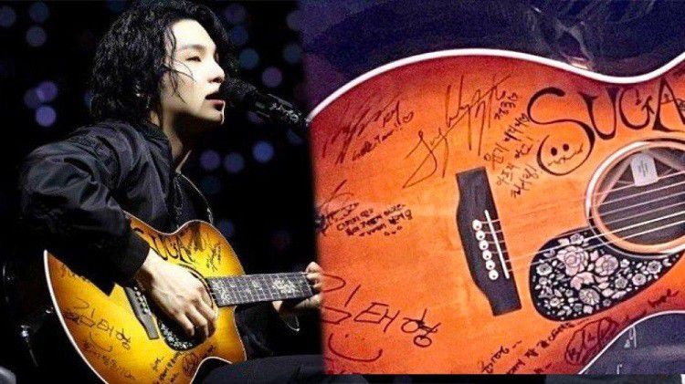 Suga BTS Pakai Gitar Dengan Coretan Member BTS (Berbagai Sumber)