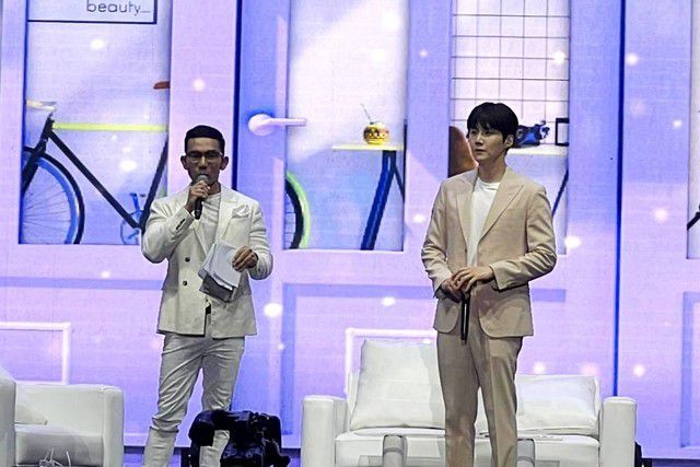 Indra Herlambang sebagai MC acara fanmeeting Kim Seon Ho (kumparan.com)