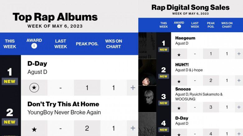 Terakhir, Suga menempati posisi No. 81 di Billboard's Artist 100 dengan nama Agust D, menandai minggu keenamnya di tangga lagu sebagai Agust D dan ketujuh secara keseluruhan (di semua nama panggung).