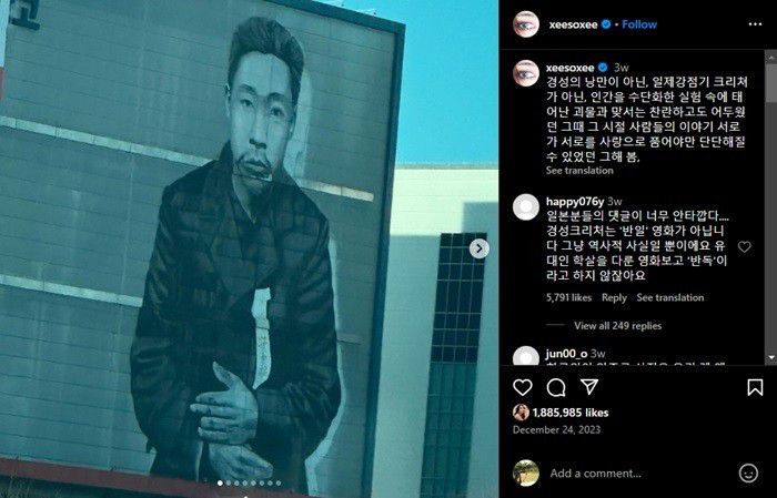 Selain itu, ada foto sosok Ahn Jung Geun yang menjadi topik permasalahan. Han So Hee memperlihatkan mural Ahn Jung Geun yang terdapat di sebuah bangunan tinggi. Tak bisa dipastikan apakah bangunan itu bagian dari lokasi syuting atau bukan.