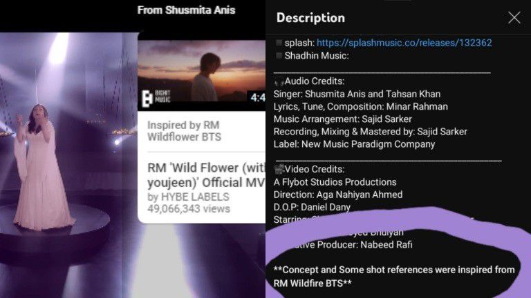 "Namjoon menghabiskan 4 tahun bekerja sangat keras di albumnya dan sekarang penyanyi yang tidak kreatif ini datang untuk meniru konsep mv Wild Flower. Kita tidak bisa membiarkan ini ARMY!!," sambung fans lain.