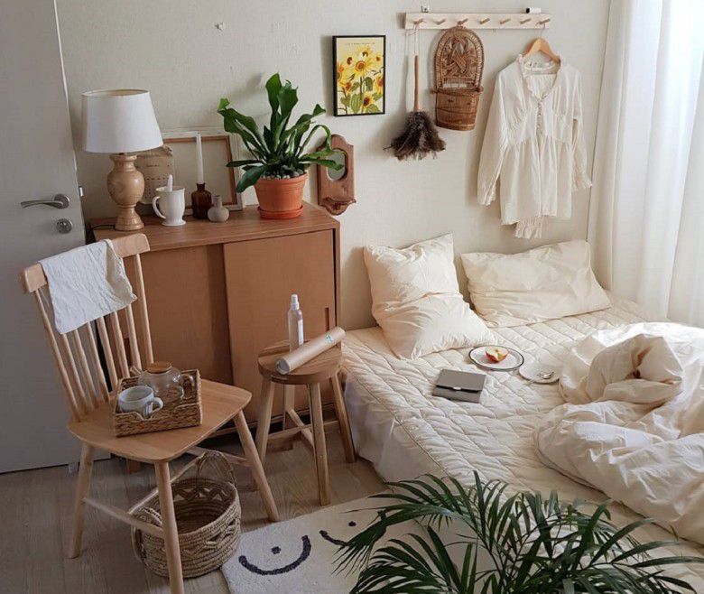 Salah satu fitur utama kamar tidur bergaya Korea adalah furnitur rendah! Sejak masa lalu di Korea dan juga bagian Asia lainnya, orang terbiasa dengan gaya hidup rumahan yang dekat dengan lantai seperti duduk dan tidur di lantai, serta bekerja dan makan di meja rendah. Dapatkan bingkai tempat tidur rendah dan meja samping tempat tidur rendah untuk tampilan yang nyaman! Saat kamu ingin bersantai di kamar tetapi tidak ingin tempat tidurmu kotor, beberapa kursi lantai yang nyaman akan berguna!