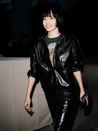 Pada acara tersebut, ia terlihat 'sederhana', memakai outfit serba hitam dengan jaket dan celana kulit. Atasannya berupa kaus t-shirt dengan gaya ala rock chic.