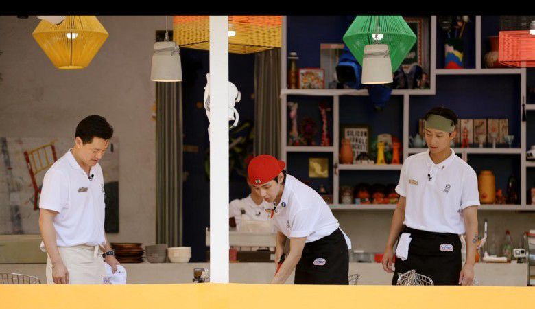 V BTS saat bekerja di "Jinny's Kitchen" (liputan6.com)