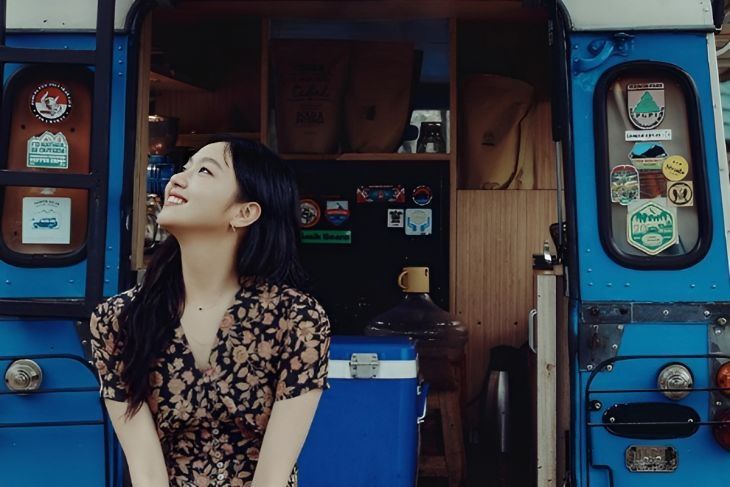 Dalam potret yang dibagikan Elle, Kim Go-eun terlihat menawan dalam balutan gaun panjang bercorak bunga dengan latar belakang mobil yang telah disulap menjadi dapur pembuatan kopi. Go-eun terlihat menengok ke arah kiri atas sambil tersenyum menatap alam di sekitarnya.