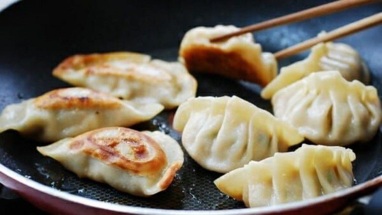 Campurkan daging cincang (boleh sapi atau babi), kubis, kucai, daun bawang, dan mi ke dalam mangkuk besar. Bumbui dengan kecap asin, anggur beras manis, jahe, minyak wijen, dan lada; aduk rata dengan tangan sampai semua bahan tercampur rata. Kemudian bungkus adonan daging itu sedikit demi sedikit dengan kulit pangsit yang tipis sesuai selera. Setelah dibentuk, masak pangsit tadi di wajan antilengket dengan sedikit minyak dan sedikit air di tengah-tengah memasak.