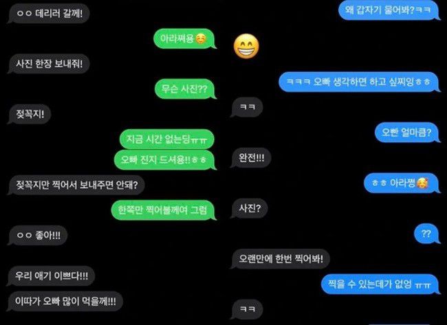 OP: ?? Aktor L: Ambil fotonya untukku, sudah lama sekali! OP: Tidak ada tempat bagiku untuk mengambil foto. Aktor L: Haha. Aktor L: Sayangku yang cantik!!! Oppa akan memakanmu banyak-banyak nanti.