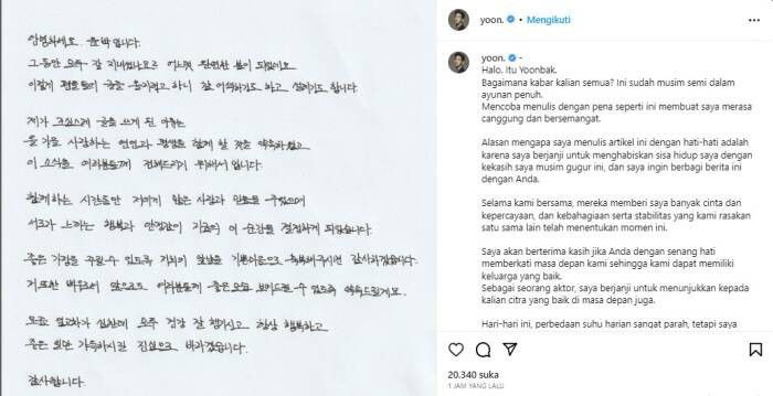 Hari ini, Rabu (3/ 2023, Yoon Bak secara pribadi membagikan berita menarik tentang pernikahannya kepada para penggemar melalui surat tulisan tangan.