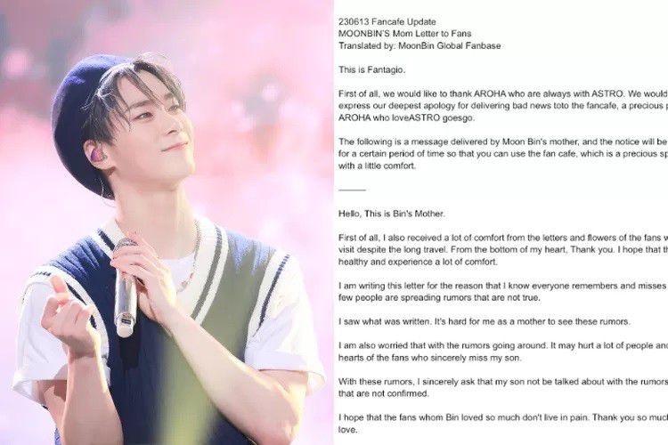 Pada Rabu malam, 13 Juni 2023, Fantagio selaku agensi, mengunggah pesan dari ibunda Moonbin di fancafe resmi ASTRO. Mulanya, ibu dari Moonbin dan Moon Sua Billlie itu menyampaikan terima kasih atas perhatian para fans.