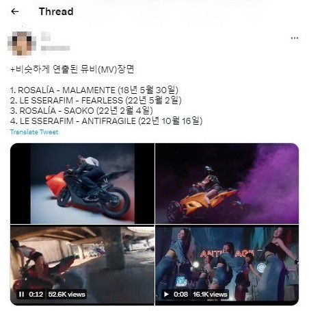 Terkait kesamaan LE SSERAFIM dan Rosalia, OP menyebut terlalu banyak kesamaan mulaidari lagu-lagu sampai vibe mereka. Jika semuanya kebetulan, OP berharap HYBE dan LE SSERAFIM bisa lebih berhati-hati dalam membentuk konsep mereka.