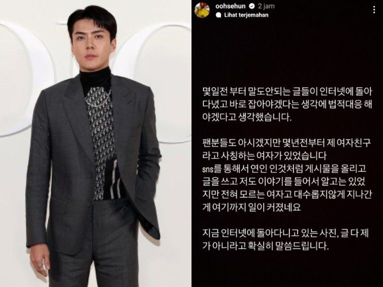 "Ada seorang perempuan yang berpura-pura menjadi pacarku sejak beberapa tahun yang lalu. Aku mengunggah postingan dan menulis artikel melalui media sosial, seolah-olah aku adalah seorang kekasih dan aku juga mendengar ceritanya. Aku mengetahuinya, tapi perempuan itu tidak aku kenal sama sekali," beber Sehun.