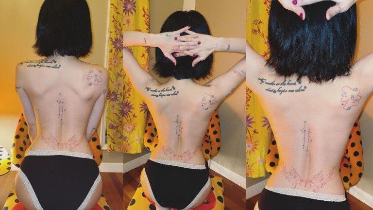Ada tato berwarna hingga tulisan yang terlihat stylish. Sejumlah fans menduga kalau HyunA memiliki tato baru setelah memutuskan berpisah dari DAWN. Tato tersebut adalah pola dengan warna merah di bagian punggung bawahnya yang tengah-tengahnya terdapat tanda salib.