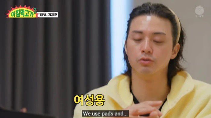 "Ya. Kami menggunakan pembalut dan kami menempelkannya di sekitar tubuh seperti popok," terang Ji Hoon. Sang aktor menjelaskan bahwa dia memakai pembalut itu sendiri tanpa bantuan siapa pun. "Aku sendiri yang melakukannya," imbuhnya.