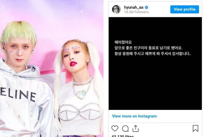 "Kami sudah putus. Kami memutuskan untuk tetap menjadi teman baik dan kolega yang baik mulai dari sekarang. Terima kasih atas dukungan dari kalian terus-menerus dan mengawasi kami dengan rasa sayang," ungkap HyunA yang dilansir dari Koreaboo, Kamis, 1 Desember 2022.