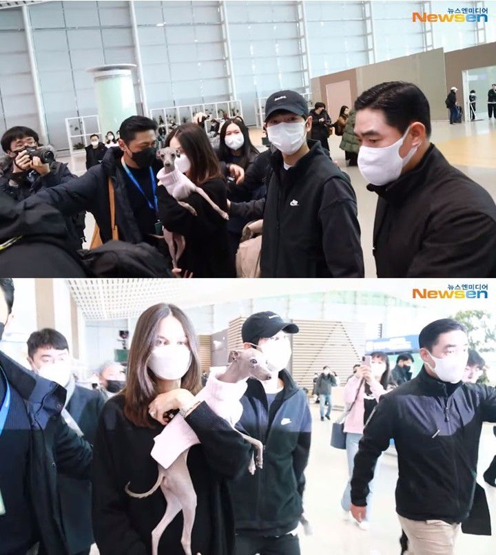Para bodyguard yang berjalan di sekitar Song Joong Ki dan Katy Louise Saunders (wowkeren.com)