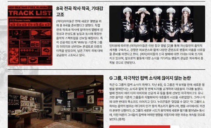 Teks itu menyatakan bahwa "G Group, kontroversi yang tidak berhenti pada berita comeback yang merangsang." Hal ini seolah menguatkan dugaan bahwa agensi memang sengaja membuat kontroversi sebagai salah satu teknik pemasaran mereka.