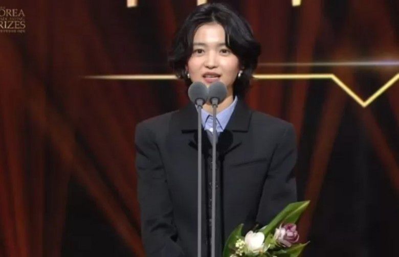 Kim Tae Ri saat memberikan pidato atas kemenangannya (wowindonesia.id)