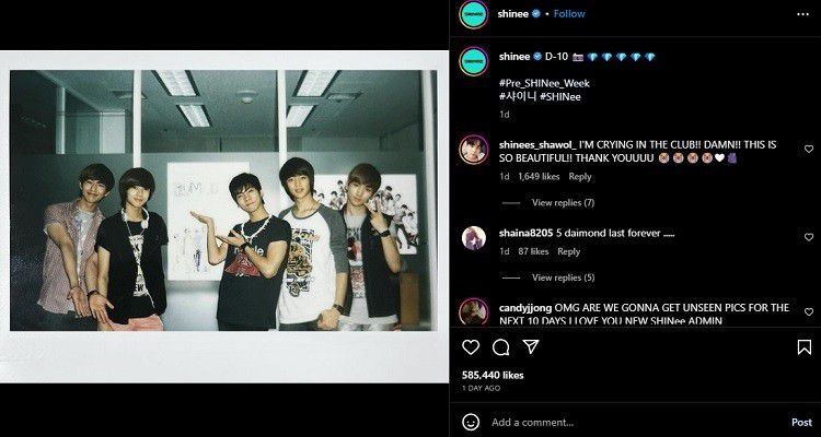 Tampak Onew, Key, Taemin, Minho dan mendiang Jonghyun yang masih berusia muda tampil dalam gaya lawas yang sedang trend pada masanya. Penggemar pun dibuat nostalgia melihat foto itu. Mereka mengatakan seluruh anggota SHINee masih terlihat sangat lucu.