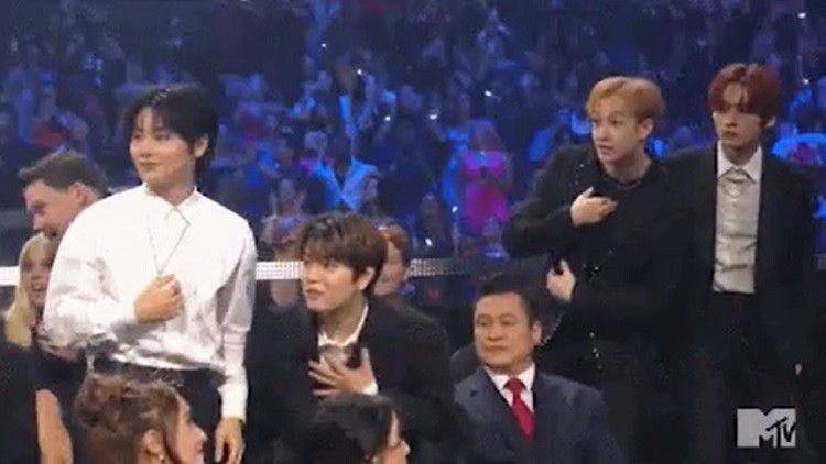Ekspresi Bingung Member Stray Kids Di MTV VMA 2023 (Twitter)