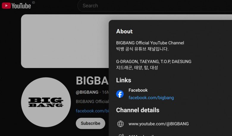 Nama T.O.P masih tercantum di akun YouTube resmi BIGBANG (youtube.com)