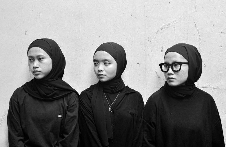 Marsya (vokal dan gitar), Widi (bass), dan Siti (drum), menghibur para penonton di Woodsies Main Stage Festival Glastonbury pada Jumat pagi waktu setempat sebagai band pembuka.