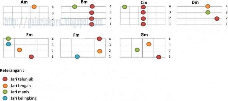 Berikut ini adalah beberapa kunci dasar ukulele atau kentrung senar 4 dari nada mayor maupun minor.