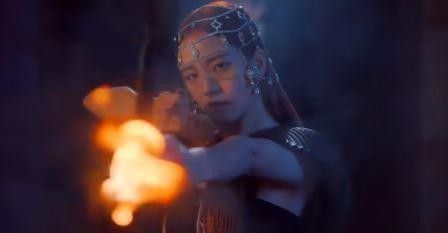 Rose jahat yang mengenakan pakaian hitam membuat Rose yang polos terpojok di dekat pintu bermotif daun semanggi. Tokoh jahat tersebut mengarahkan sebuah panah api ke arah Rose berbaju putih.