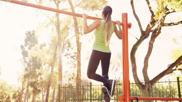 Hanging merupakan gerakan dimana tubuh bergelantungan dengan meletakkan berat badan pada kedua tangan dan menggantungkan tubuh pada bar. Cobalah melakukan gerakan ini dua atau tiga kali setiap kali berolahraga selama 5 – 7 menit. Coba cari penyangga badan yang kuat dan aman saat digunakan.
