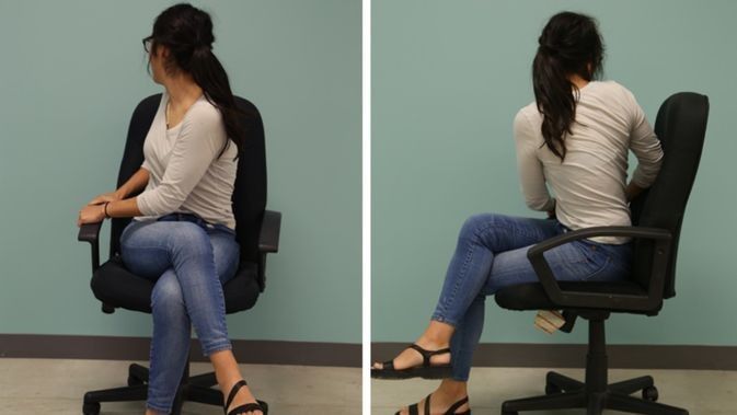 Masih dalam posisi duduk, gerakan ini bisa kamu lakukan dengan meletakkan lutut kanan di atas lutut kiri. Lalu tangan kiri digunakan untuk menarik lutut kanan ke arah kiri sehingga pinggang akan meregang. Tahan 5 sampai 8 hitungan dan ulangi gerakan sebanyak 3 kali. Sama seperti sebelumnya, gerakan ini juga berguna untuk melepaskan kekakuan di daerah pinggang dan mengembalikan kondisi fisik untuk dapat siap bekerja sampai akhir waktu
