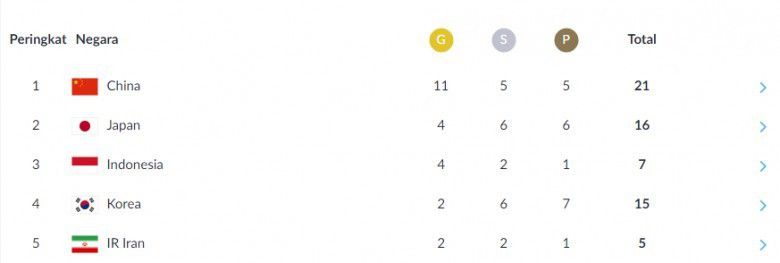Tabel perolehan medali sementara Asian Games 2018 (paragram.id)