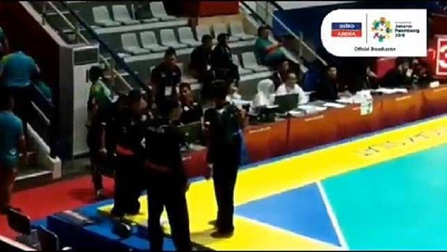 Aksi tidak sportif atlet Malaysia. (Twitter @giewahyudi)