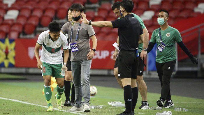 Shin Tae-yong sang pertandingan AFF 2020 Timnas Indonesia vs Singapura (sport.detik.com)