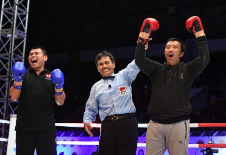 Duel Menpora Imam Nahrawi versus petinju Chris John (Twitter @HaiMagazine)
