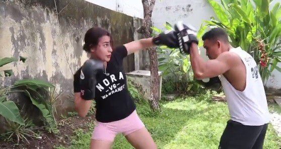 Saat berada di rumah, Nora juga tetap melakukan olahraga dengan tidak bermalas-malasan. Misalnya dia menceburkan diri di kolam renang hingga memanggil pelatih boxing atau tinju dan melakukan latihan di halaman belakang rumah yang cukup asri.