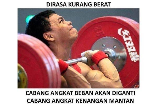 Cabang olahraga angkat besi sebenarnya menjadi salah satu kekuatan Indonesia. Tapi masa iya nantinya angkat besi akan diganti menjadi angkat kenangan mantan. Wah emang bakalan berat banget kalau dingat-ingat.