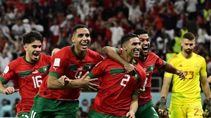 Ekspresi Timnas Maroko saat berhasil kalahkan Spanyol (batam.tribunnews.com)