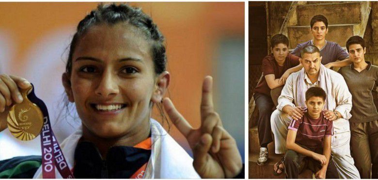 Geeta dan poster film Dangal yang mengisahkan keluarganya. (playo.com)