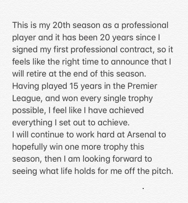 "Ini akan jadi musim ke-20 saya sebagai pemain profesional dan sejak saya meneken kontrak 20 tahun lalu, jadi ini rasanya jadi saat yang tepat mengumumkan bahwa saya akan pensiun akhir musim ini" ungkap Cech.