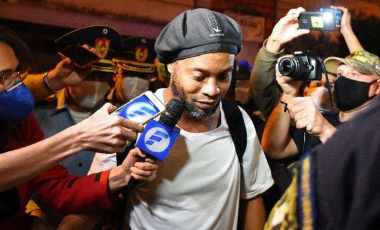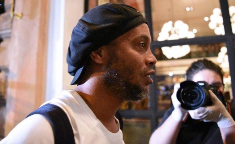 Ini bukan di todong tembakan ya gengs, ini alat cek suhu tubuh, mengingat Ronaldinho keluar penjara saat-saat pandemi corona yang menyebar keseluruh dunia. Hiks, semoga segera berakhir ya....