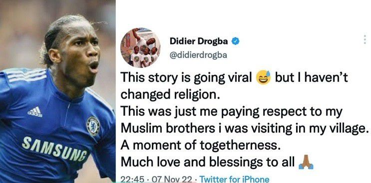 Klarifikasi Didier Drogba Soal Kabar Mualaf (Twitter)