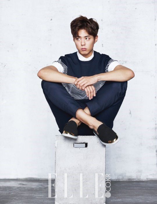 1. Ini waktu ia sedang jadi model pemotretan untuk majalan Elle. Slip on shoes, baju dan celana dengan warna sepadan, dan rambut cepak messy-nya bikin kesengsem.
