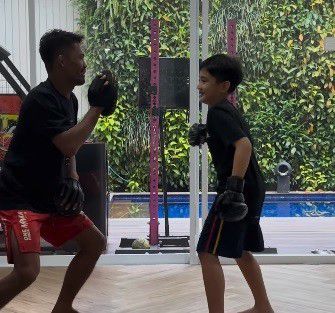 Rafathar saat latihan bela diri tidak perlu mendatangi tempat khusus. Sang pelatih memutuskan mengajar Rafathar di rumahnya. Nampak Rafathar sangat bersemangat sembari latihan bela diri. Sesekali ia tersenyum ketika mencoba beberapa teknik pukulan.