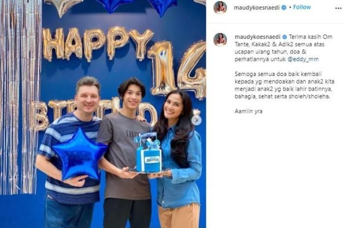 Maudy dan keluarga bahagianya! Potret terbaru ini memperlihatkan kebahagiaan dan kedekatan Maudy yang merayakan ulang tahun anaknya yang ke 14 nih.