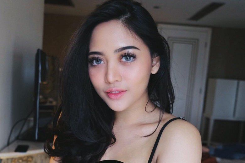 Meski di rumah aja, ibu dua anak ini tetap tampil cantik dengan dandanan natural dan kontak lensa warna biru keabu-abuan. Kelihatan seksi ya ges?