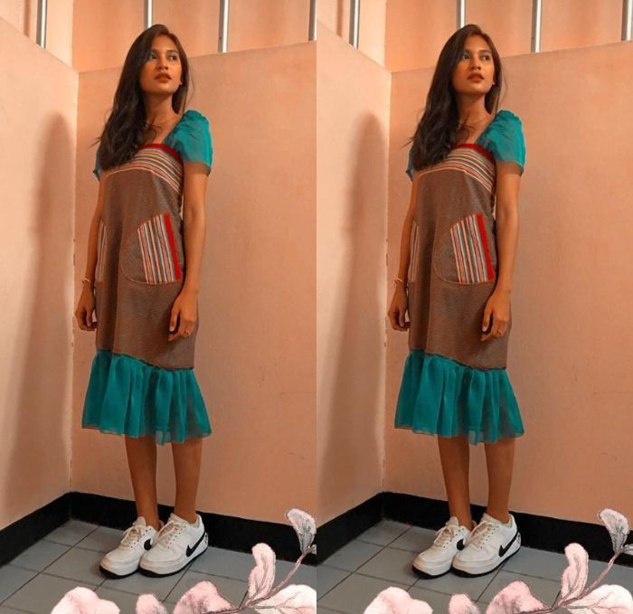 Kalau ini, dress hasil jahitan ibundanya sendiri. Dengan memanfaatkan kain dari Buton khas Sulawesi Tenggara. Why so gorgeous?