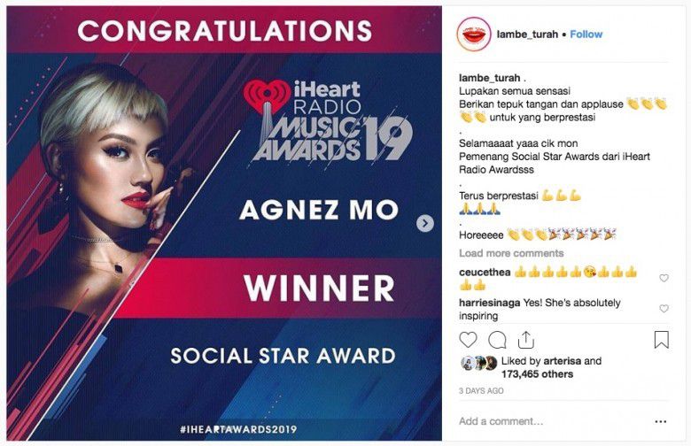 Kemenangan Agnes tersebut tentu semakin membuat para fans semakin cinta kepadanya. Postingan akun @lambe_turah tersebut akhirnya dibanjiri pujian kepada Agnes. Bagaimanapun prestasi skala internasional selalu menjadi kebanggaan rakyat negeri +62 ini.