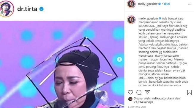 face shield ini jadi perkara antara dokter Tirta dan Melly Goeslaw. Dokter Tirta menyindir Melly yang menggunakan face shield. Alasannya karena gak ada efeknya buat mencegah virus.