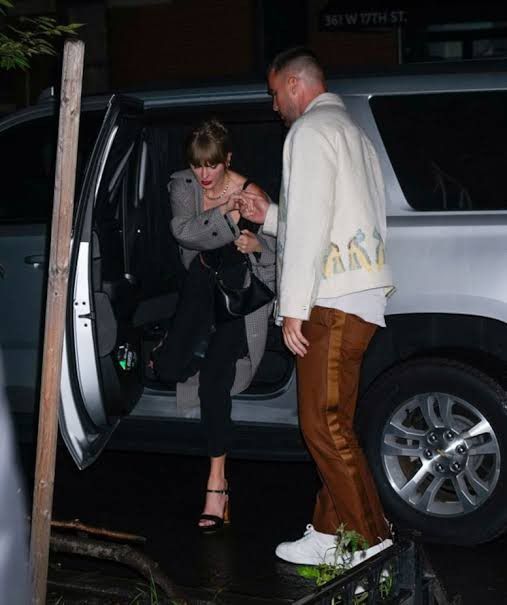 Travis menggandeng Taylor ketika keluar dari mobil (eonline.com)