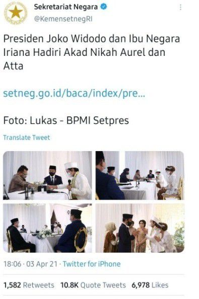 Baru-baru ini, warganet Twitter heboh menyerang akun Twitter Sekretariat Negara @KemensetnegRI gara-gara mengunggah foto kehadiran Presiden Joko Widodo di acara pernikahan Atta Halilintar dan Aurelie Hermansyah.